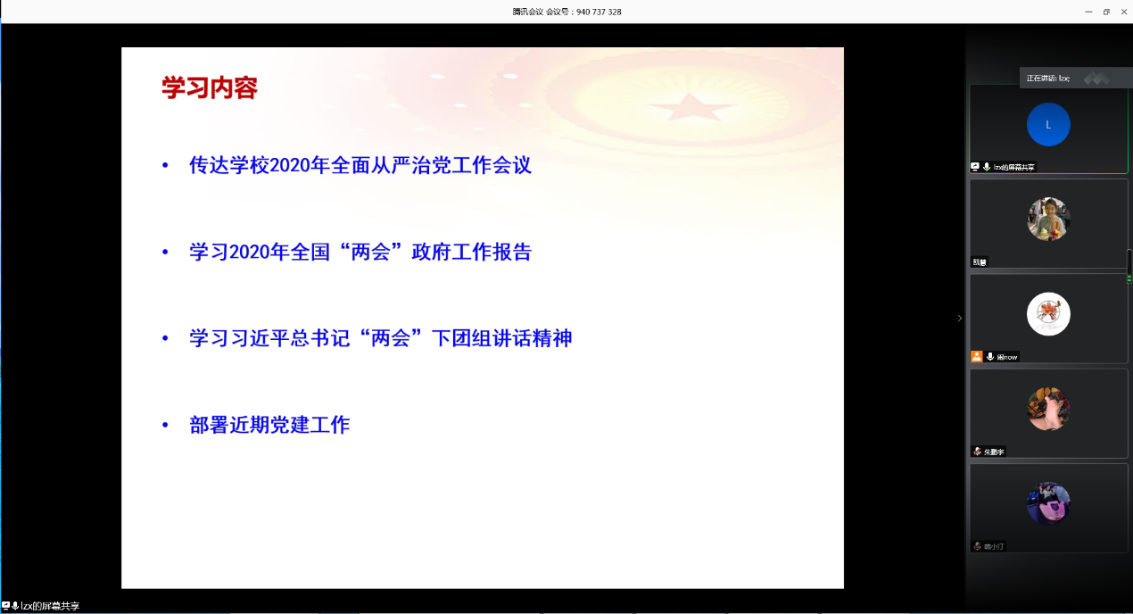 会议要求,各支部要迅速组织全国“两会”精神的学习工作,做好学校2020年全面从严治党工作会议的传达工作,进一步坚定理想信念,紧跟时代步伐,紧密结合工作学习实际,把学习贯彻两会精神与推进学院年度重点工作紧密结合,抓好“两会”精神落地见效。
