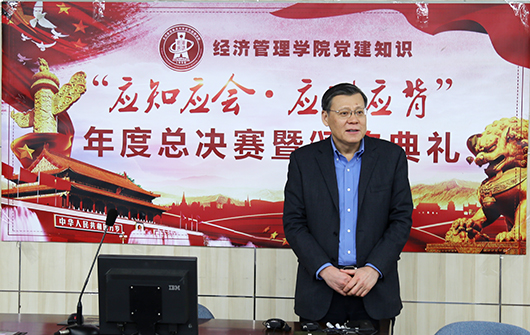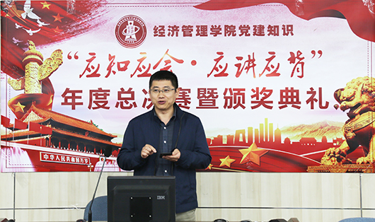 2018年12月14日中午,学院在新主楼A622举行“应知应会,应讲应背”年度总决赛。比赛采取现场在线形式进行,在全年四期测试中排名前15名的党员师生参加了本次比赛,研究生指导主任单伟主持比赛。
