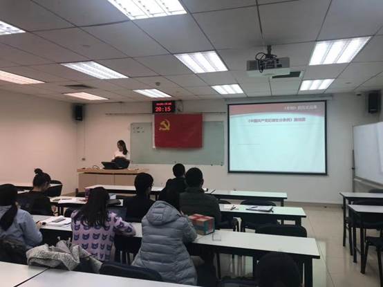 之后,谭晓玲同志以《中国共产党纪律处分条例》为主要内容,带领大家开展反腐倡廉每季一课学习。她在全面梳理《条例》要点与内涵的基础上,提出作为党员要具有高度正确的党性意识,强化学习意识,强化敬畏意识。