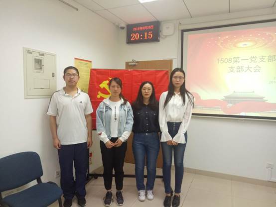 9月25日(星期二)晚20:00,本科1508第一党支部于新主楼A1139成功举办了2018年秋季学期第一次支部党员大会暨支部委员会换届大会。此次会议由丁宁同志主持,支部全体党员参加了此次会议。此次会议议题如下:1508第一党支部支委会换届选举、学习传达学院会议精神、支部工作计划和职责分配的确定。