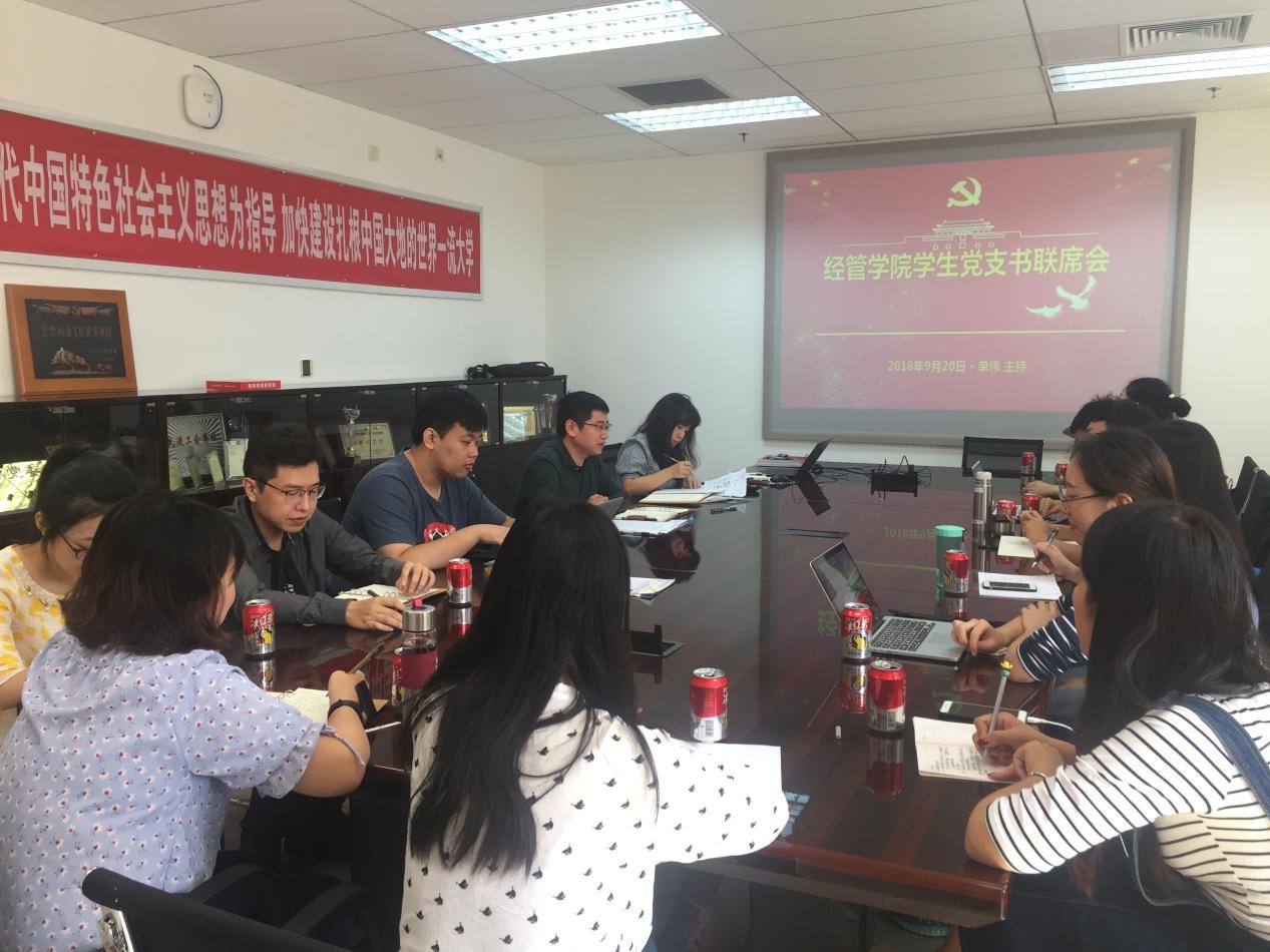 2018年9月20日在新主楼A710召开了经管学院学生党支部书记联席会,组织学生党支书对第三季度“反腐倡廉每季一课”的内容进行学习。会议由研究生指导主任单伟副教授主持,本科工作办辅导员白雪老师、研究生工作办辅导员张慧美老师全程参加本次会议。