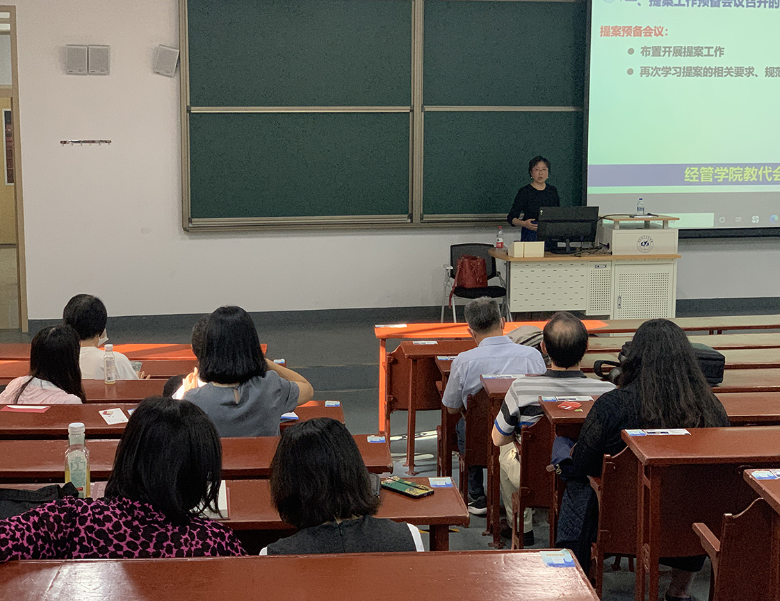 2022年9月21日下午,经管学院在三号教学楼213召开了第十五届教职工代表大会提案预备会议。学院工会主席谢岚就教代会相关文件、提案征集方法和渠道进行了详细介绍和部署,近二十名教代会代表参加了此次会议。