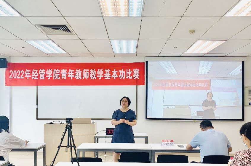 6月21日下午,我院在新主楼A706举办了“2022年经管学院青年教师教学基本功比赛”,同时通过腾讯会议面向全院全程现场直播。