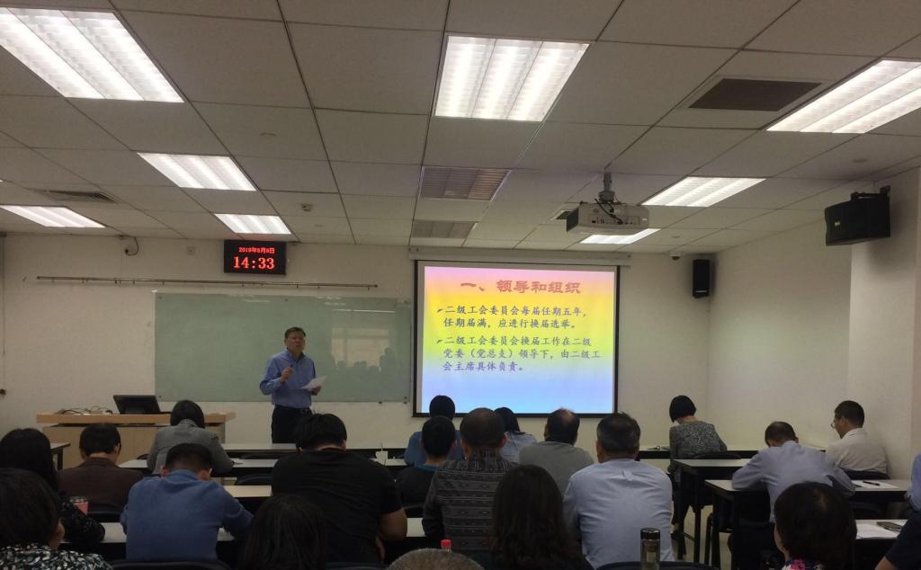 2019年5月9日下午,经管学院在新主楼A1048组织了全院教工大会,进行了学院工会委员会、教代会换届选举活动。此次活动由经管学院刘志新书记主持。