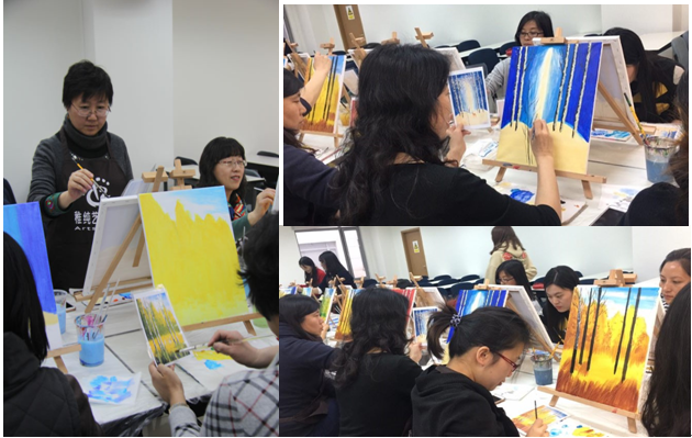 3月22日下午,经管女教职工欢聚新主楼A928,在稚纯艺术教育培训老师的指导下,体验油画艺术的完整创作过程。我院女教职工欢声笑语,发挥想象,每人完成一幅30cmX40cm油画作品,度过了一段精致悠闲的美好时光。