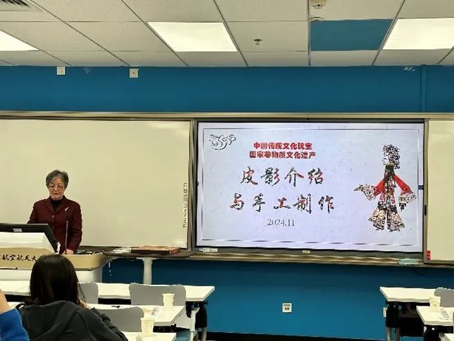 讲座中,高老师为大家深入讲解了皮影艺术的悠久历史与文化底蕴,详细阐述了皮影的起源、演变过程以及它在中国民间艺术中的独特地位。皮影,作为一种综合性艺术形式,已有2000多年的历史。它不仅包含了皮影戏的演出,更包括皮影人物与道具的制作过程。