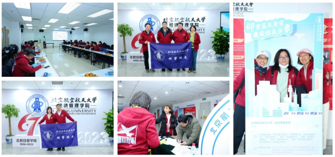 下午1时许,来自全国各地的3308同学陆续到达新主楼A座六层经管广场。大家穿上了定制的“归航93”卫衣,在学院发展史宣传栏前驻足,在“北航经管学院1956—2023”标识前留影,在留言板贴上对学院的祝福寄语。