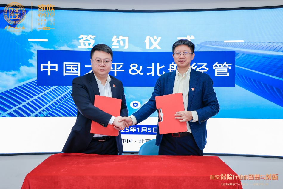 2025年1月5日下午,北京亚洲成人在线一二三四五六区经济管理学院党委书记郑海涛、副院长牟晖、校友发展中心主任胡鹤、EMBA校友会会长宋战平、秘书长张凯旋及20余位EMBA校友参访太平人寿保险有限公司北京分公司。太平人寿北京分公司党委委员助理总经理董伟、海淀支公司党委书记总经理张新愿、海淀支公司CBD负责人王军、海淀支公司区域总经理傅莉红等参加活动。本次活动由北航EMBA校友、太平人寿家族办公室事务专家徐亮主持。