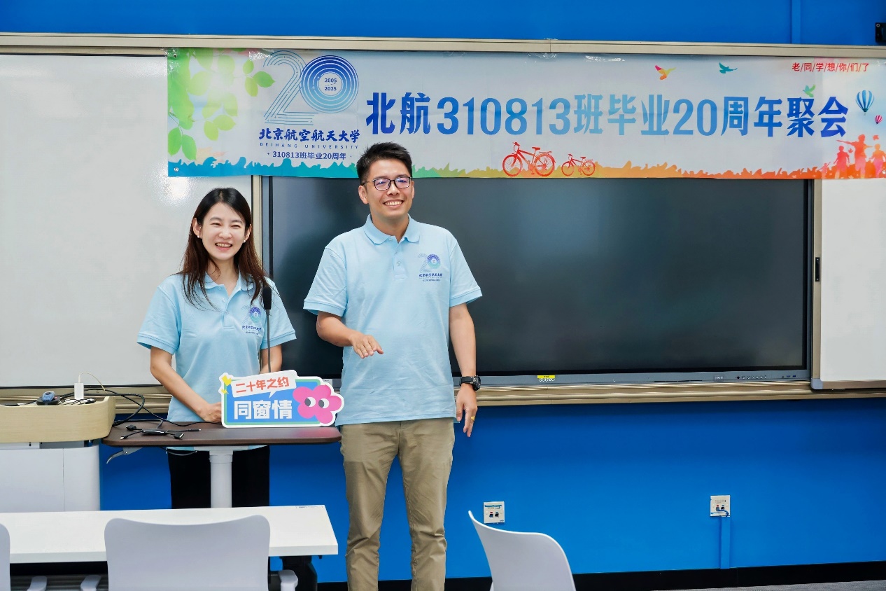 上午,同学们陆续抵达位于新主楼A1148教室进行签到。教室内布置简洁温馨,熟悉的课桌与黑板仿佛让人一瞬间穿越回到 2001 年那个金秋,我们初入北航时的青涩模样依旧历历在目。二十年后的今天,我们的名字再次被记录在签到簿上,这不只是一次出席,更是对青春记忆的一次庄重点名。彼此相见时的笑容中夹杂着惊喜与感慨,有人感叹岁月流转,有人感恩情谊长存。正如北航的精神滋养着一代代学子,我们的友情也在二十年的风雨中历久弥坚。