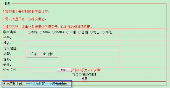 在规定的时间再次进入系统,在下方将出现查重结果文件下载的链接,下载该文件!
