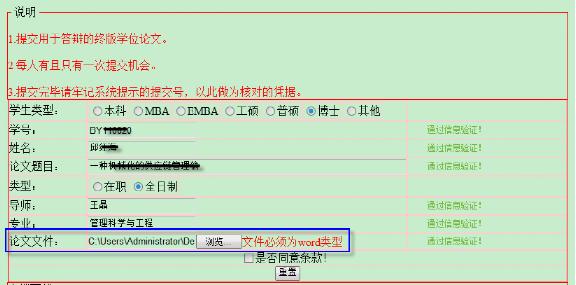 论文文件:必须是word类型(doc或docx格式),点击浏览添加自己的终版论文