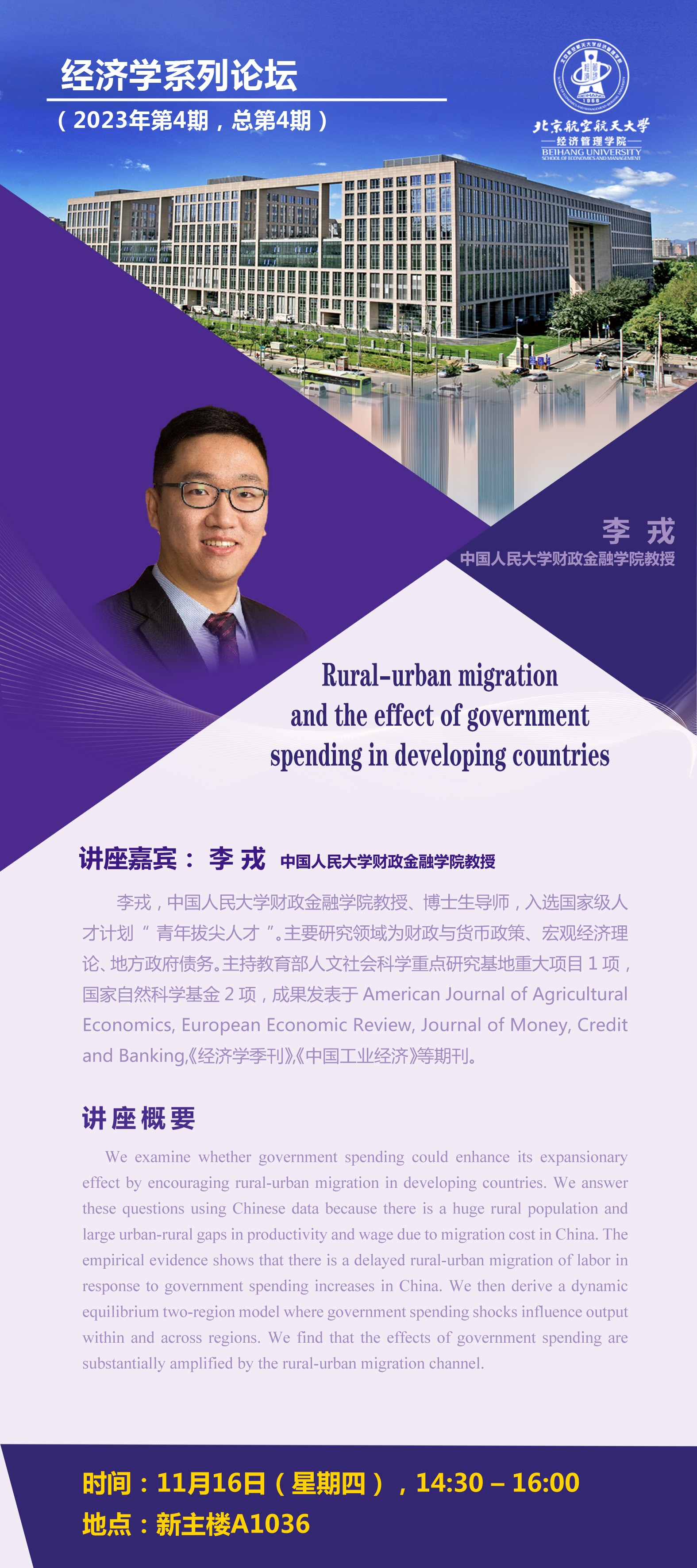 【经济学系列论坛】Rural-urban migration and the effect of government spending in developing countries