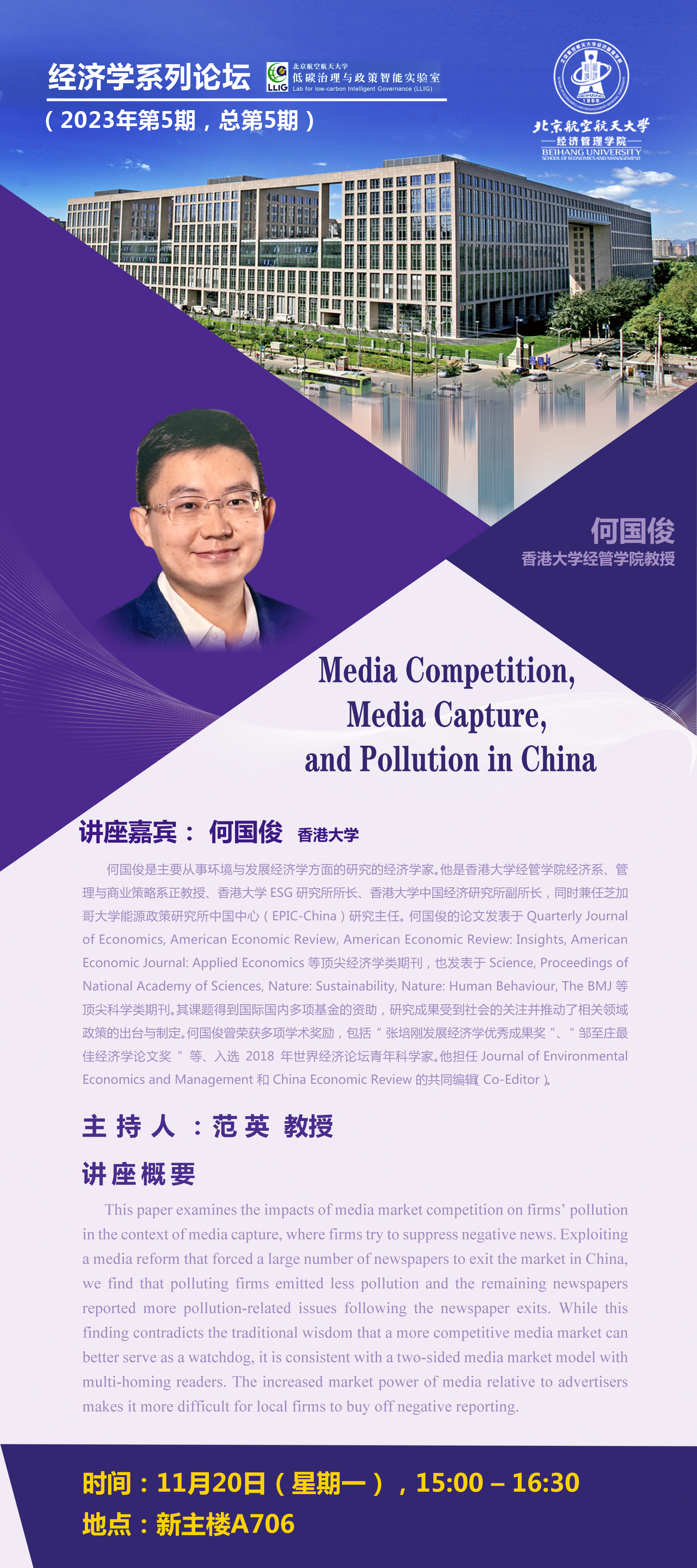 【经济学系列论坛】Media Competition, Media Capture, and Pollution in China