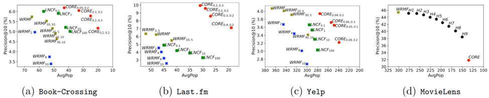 图3:CORE在长尾推荐与精准推荐上的联合优势