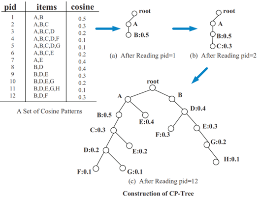 考虑到长尾推荐的迫切需求以及基于模式的推荐算法的优势,本研究提出了基于余弦模式的推荐方法CORE,以实现有效的长尾推荐。CORE是一种基于模式的推荐方法,它在不同的产品(特别是利基产品)之间挖掘以余弦模式表示的关联(见图1),然后利用所发现的关联来进行产品推荐。与许多被广泛使用的推荐方法相比,CORE在各种情况下都显示出了出色的长尾性能。由于它能够有效过滤由于产品数量分布有偏而生成的虚假模式,CORE在稀疏和重尾数据上仍然具有很高的竞争力。CORE还支持参数化推荐产品的流行度,可为生成不同流行程度(或长尾)的产品推荐提供灵活性,以实现各种推荐目标。CORE的可伸缩性是由一个专门设计的数据结构来实现的,该结构有利于提高大规模应用中的实时推荐能力(见图2)。本研究在多个真实数据集上进行了全面的实验,结果表明CORE相对于许多经典的或被广泛使用的推荐方法,不仅具有显著的长尾推荐优势(见图3),而且在推荐准确性、利基推荐灵活性(见图4)、大规模推荐伸缩性等各方面表现优异。