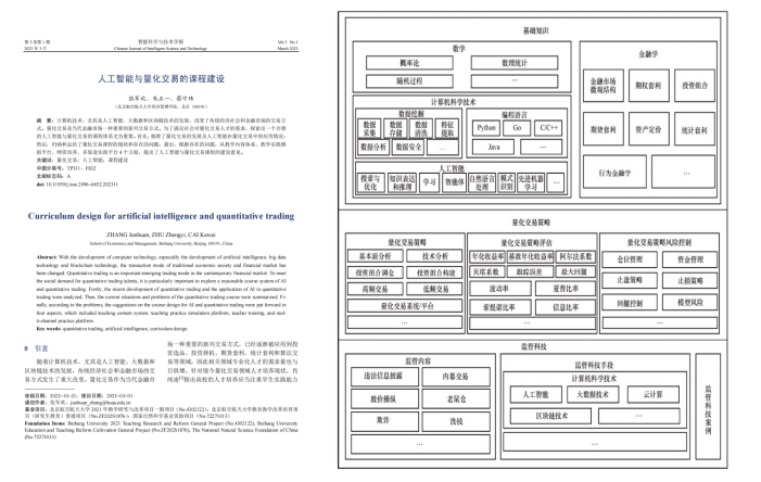 在“人工智能+”战略背景下,经济管理学院张军欢老师团队坚持以学生为中心,秉承“交叉融合、产教协同、科教融合”的发展理念,积极推进人工智能与金融的深度融合,围绕课程体系建设、教材与教学改革、学生培养、实践教学与科研创新等方面,构建了具有北航特色的人工智能赋能金融人才的培养体系,为新质生产力发展和复合型金融人才培养提供了有力支撑。