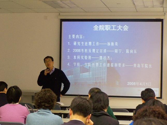 4月1日下午2:30,经济管理学院在新主楼A1028召开了全院教职工大会,会议由黄海军院长主持。